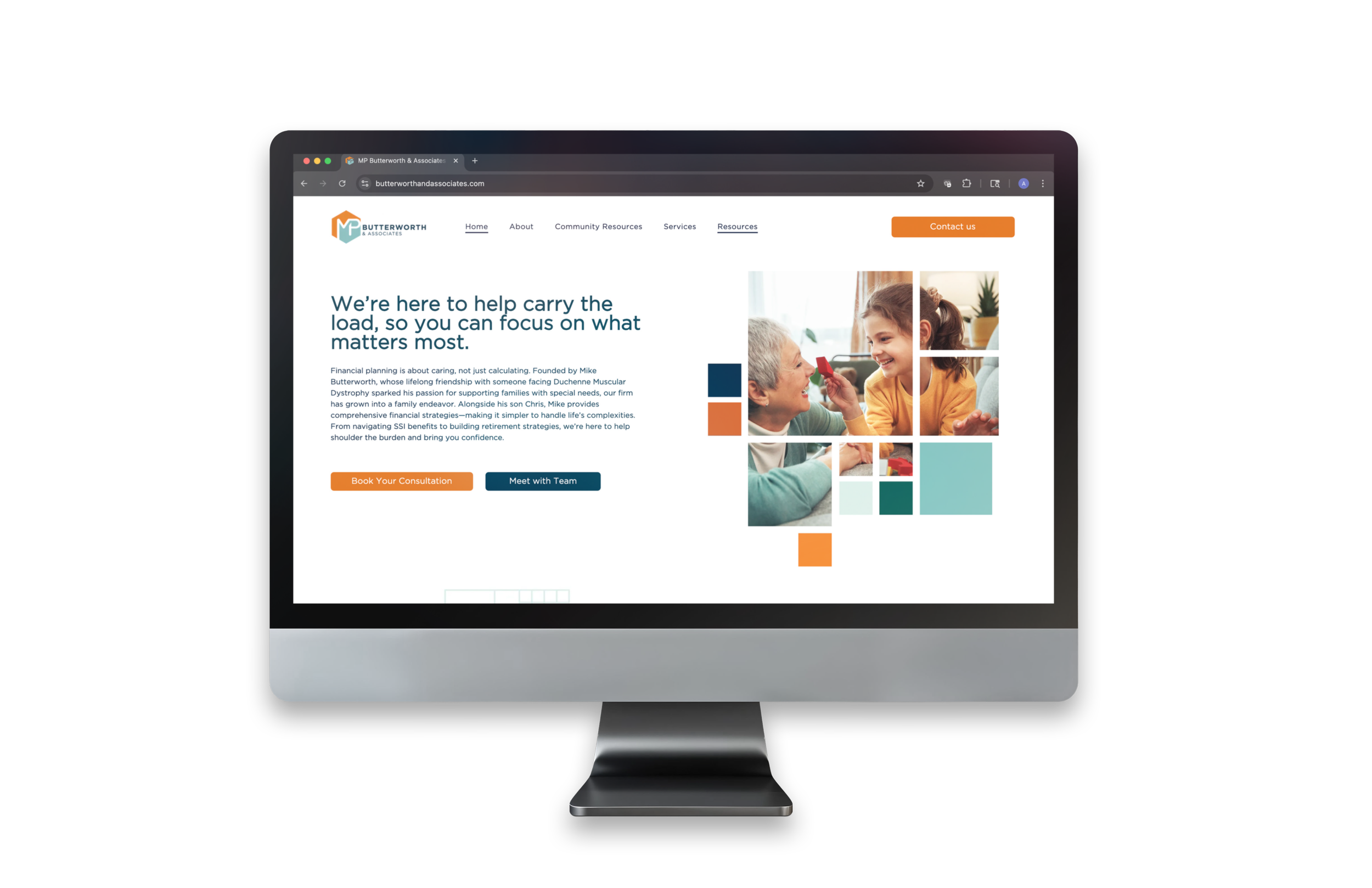 I had the absolute pleasure of collaborating with MP Butterworth on their rebrand. Their specialized approach to financial planning for families with special needs called for a distinct identity that stands apart in their industry. Soft yet confident colors, approachable typography, and heartfelt messaging reflect their mission to simplify complex financial decisions while treating every client like family, with empathy, expertise, and unwavering support. The stacking block motif symbolizes the process of building a secure future and retiring with confidence on top.